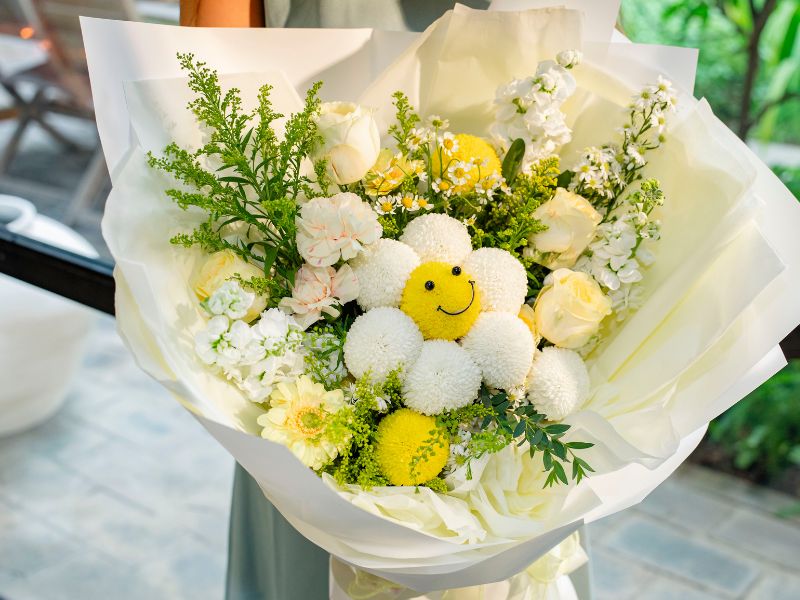 Looking for a unique Valentine’s gift that stands out from the traditional red roses? Hello Smile – our premium Pompon Mums (Ping Pong Daisies) bouquet from Botanica – is the perfect way to deliver sincerity and joy to your loved one in Ho Chi Minh City.