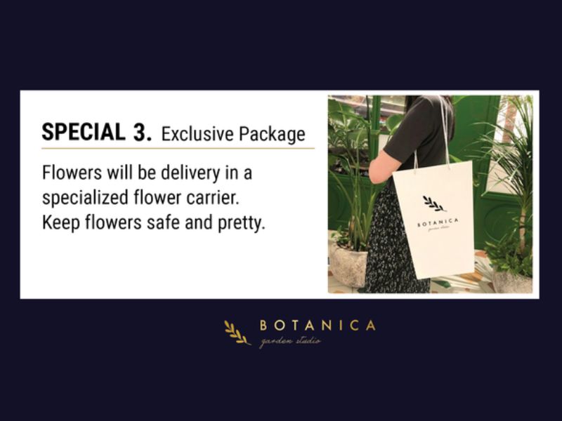 Exclusive Delivery Bag: Your flowers travel in our Botanica specialized delivery bag, designed specifically for safe transport and an elegant presentation upon arrival.